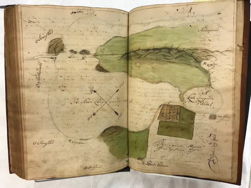 Denne flotte, gamle boken har tittelen «Commissions Akt og dom ang. Lungegaardens grændser. 1726-27.», og er skrevet av Abraham Wessel. Den er tilgjengelig ved UiB, Manuskriptsamlingen, Ms 389 / ubb-ms-0389.