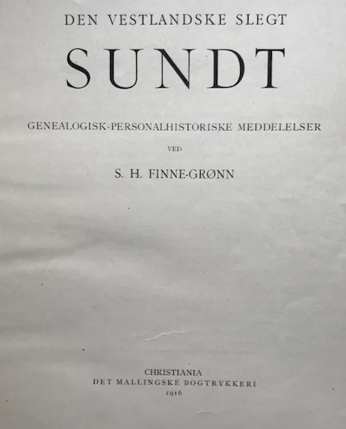 Jeg har vært så heldig å få låne denne boken av en av Christian Gerhard Ameln Sundts etterkommere. Her er det slektshistorie helt tilbake til 1400-tallet. Boken inneholder mange siden om Christian Sundt og hans barn og barnas ektefeller. Her er også bilde av Kalfarveien 43 og 45 med et flott hageanlegg.
